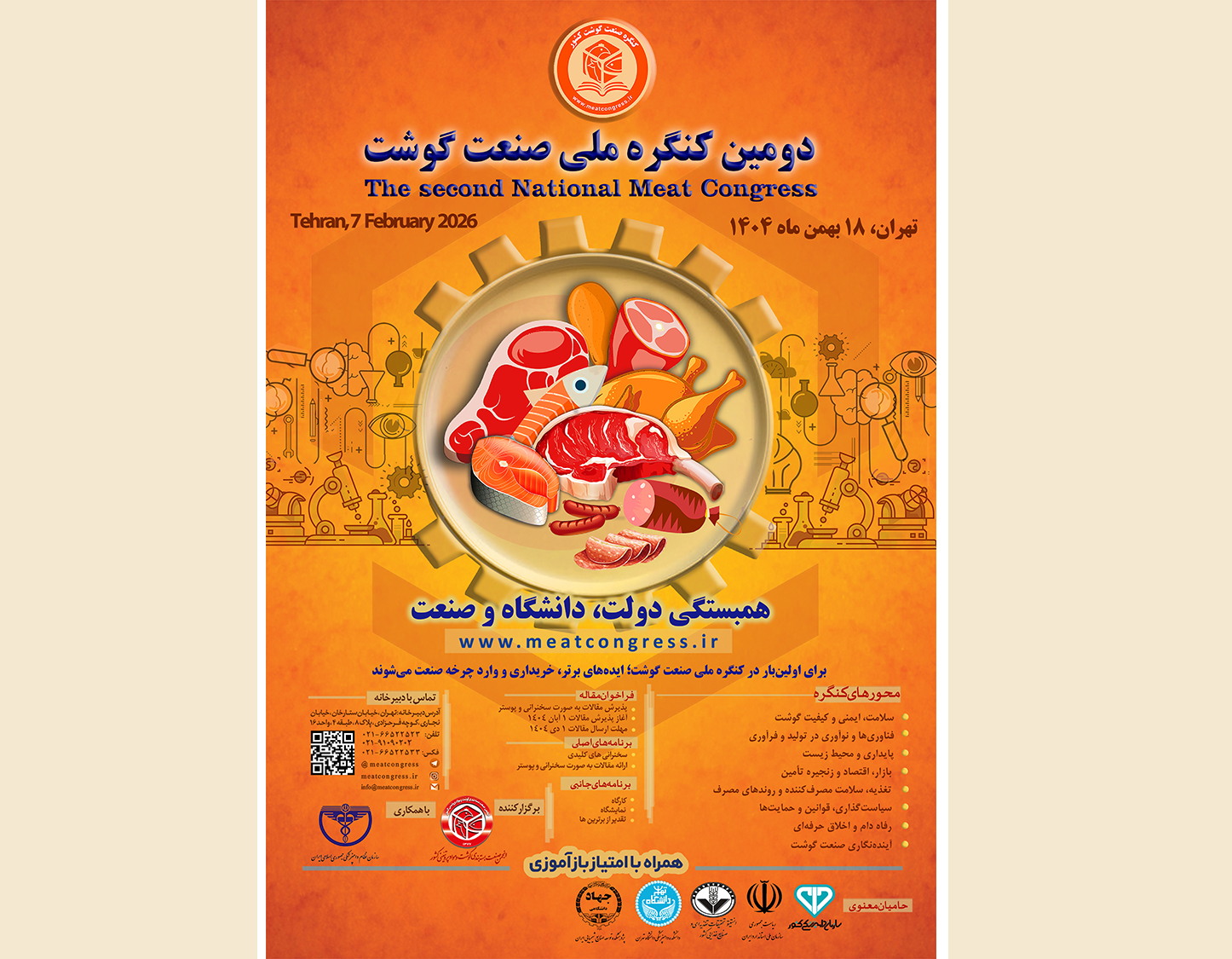 صنایع غذایی: دومین کنگره ملی صنعت گوشت (The Second National Meat Congress ) با حضور اساتید دانشگاه، فعالان زنجیره تأمین، نهادهای دولتی و تشکل‌های تخصصی، روز شنبه ۱۸ بهمن ۱۴۰۴ در هتل المپیک تهران برگزار خواهد شد.